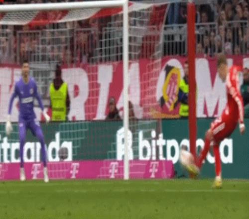 第81分钟,凯恩击中门柱,这是拜仁此役第三次击中门柱。